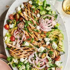 That gorgeous grilled chicken sliced across the top like a salad crown 👑🔥